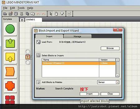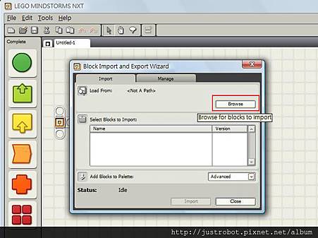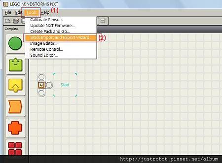 打開NXT-G→ TOOL → block import and export wizard(如下圖)