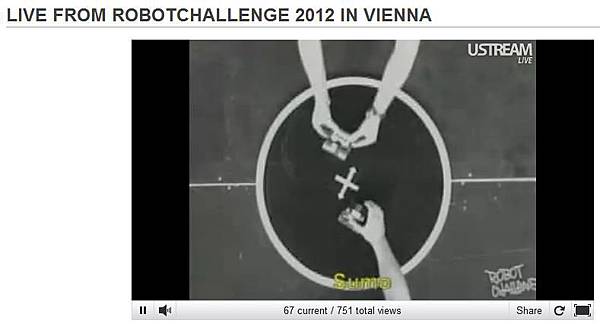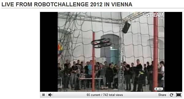3/10在RobotChallenge 2012官網上觀賞了競賽的直播,沒有去到維也納,也可以看到比賽實況,很不賴,3/11還有比賽,有興趣可以去看看。