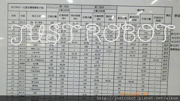 WRO 2012北區高中職組-競賽成績表 ROBOT VAN GOGH